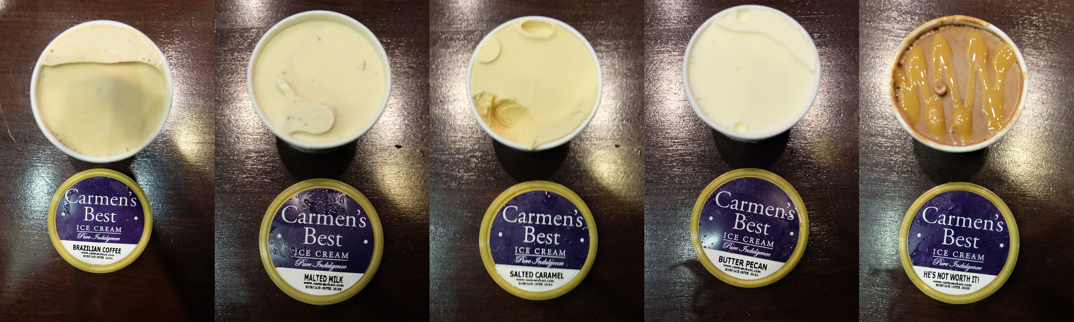As of the moment, Carmen’s Best carries 6 flavors: Salted Caramel, Malted Milk, Brazillian Coffee, Butter Pecan, Dark Chocolate and He’s Not Worth It, which is basically a Mississippi mud pie that wins at life. Each flavor has a distinct reason for its being such as the Malted Milk being reminiscent of ones childhood favorite snack Horlicks Malties, the Butter Pecan being Paco’s favorite ice cream flavor as a child and He’s Not Worth It for the ladies (and men) who need an little extra push to check out that ice cream. While there are other back stories to each flavor, the important question here is… what makes Carmen’s the best ice cream?