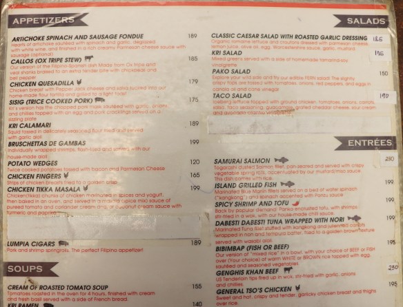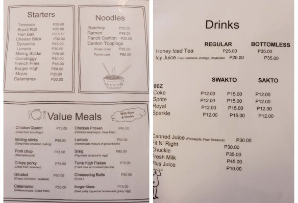 As I scanned the menu, I was delighted at how affordable each meal was. With meals ranging from P20.00- P99.00, I then asked myself if the food, at those prices, could possibly be any good. I mean, something that costs this cheap can’t be THAT good, right? Wrong, again.