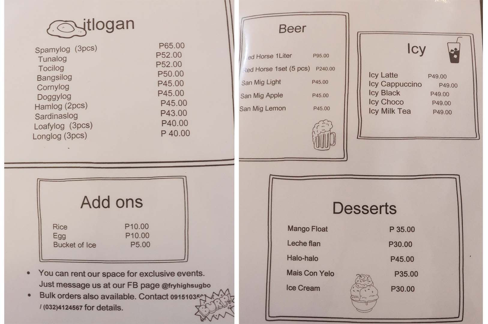 To paint you a pretty picture, Fry High is located along the busy roads of J. Urgello street or along Sacred Heart Hospital. It’s a small shop at the side of the road and you have to keep an open eye out for it or you could possibly miss it. Be extra attentive because once you spot interiors that are beautifully plastered with black and white murals, you’ve found the right place! Unfortunately, there is no parking in front of the store but you can park at a walking distance from it.