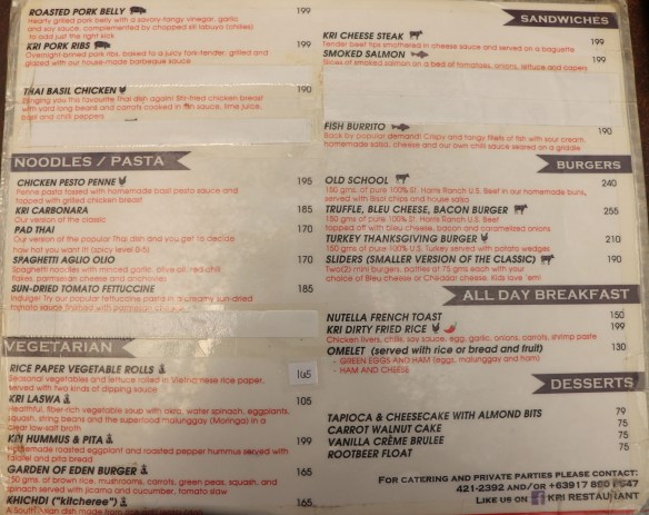 Kri will always have a special place in my heart because their burgers are superb! They are in the mid range price but I swear, it’s worth it. I first visited there in 2013 during my very first visit there and I was so happy to return 4 years later to the same, if not better, taste of their juicy angus burgers and other dishes. It’s weird that I would eat burgers in Dumaguete but just trust me on this one!