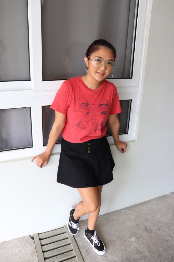 Star Wars Shirt: Old Navy| Skirt: Gaisano Carcar| Fishnet socks: Forever21| Sneakers: Vans